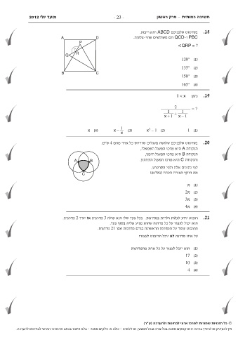a מועד יולי 201c2 B C - 23 - חשיבה כמותית -פרק ראשו ן