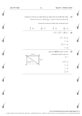 אין להעתיק או להפיץ בחינה זו או קטעים ממנה בכל צורה ובכל אמצעי ,או ללמדה -כולה או חלקים ממנה -בלא אישור בכתב מהמרכז הארצי לבחינות ולהערכה.