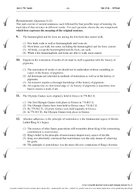 This part consists of several sentences, each followed by four possible ways of restating the