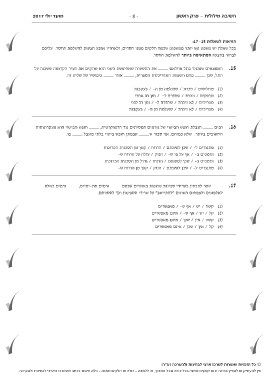בכל שאלה יש משפט (או יותר ממשפט) שכמה חלקים ממנו חסרים ,ולאחריו ארבע הצעות להשלמת החסר .עליכם