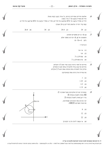 אין להעתיק או להפיץ בחינה זו או קטעים ממנה בכל צורה ובכל אמצעי ,או ללמדה -כולה או חלקים ממנה -בלא אישור בכתב מהמרכז הארצי לבחינות ולהערכה.