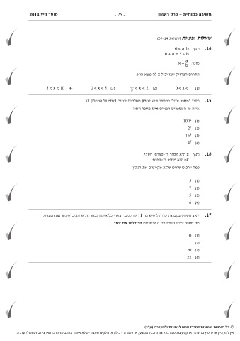 מועד קיץ 2018 - 25 - חשיבה כמותית -פרק ראשו ן