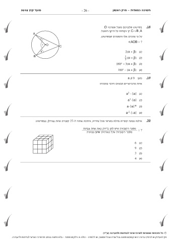 מועד קיץ 2018 - 26 - חשיבה כמותית -פרק ראשון