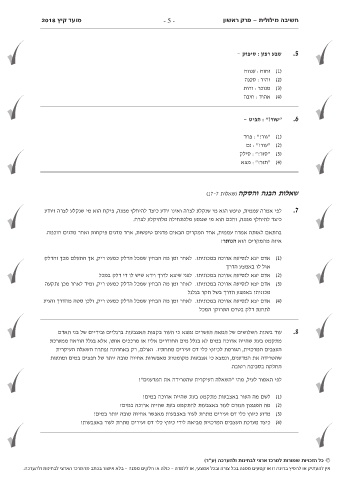 מועד קיץ 2018 חשיבה מילולית -פרק ראשו ן - 5 -