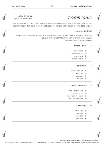 מועד קיץ 2019 - 12 - חשיבה מילולית -פרק שני