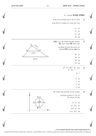 מועד קיץ 2019 - 21 - חשיבה כמותית -פרק ראשון
