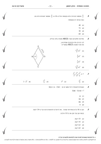 מועד קיץ 2019 - 22 - חשיבה כמותית -פרק ראשון