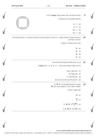 מועד קיץ B2019 - 32 - חשיבה כמותית -פרק שני