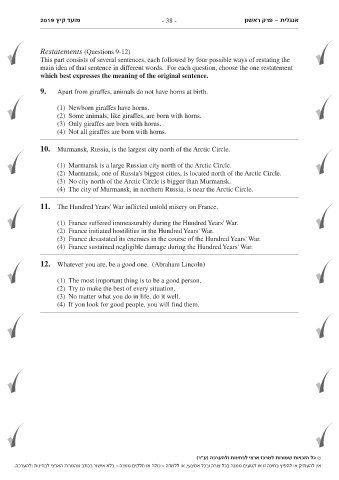 . בלא אישור בכתב מהמרכז הארצי לבחינות ולהערכה- כולה או חלקים ממנה- או ללמדה,אין להעתיק או להפיץ בחינה זו או קטעים ממנה בכל צורה ובכל אמצעי