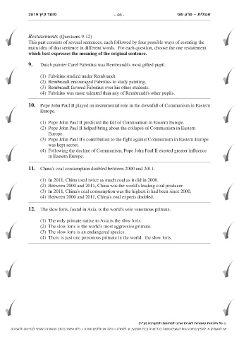 . בלא אישור בכתב מהמרכז הארצי לבחינות ולהערכה- כולה או חלקים ממנה- או ללמדה,אין להעתיק או להפיץ בחינה זו או קטעים ממנה בכל צורה ובכל אמצעי