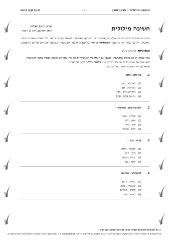מועד קיץ 2019 חשיבה מילולית -פרק ראשון - 4 -