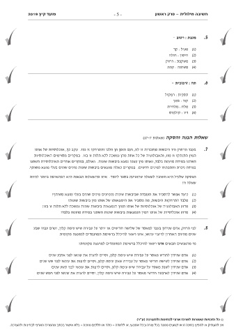 מועד קיץ 2019 חשיבה מילולית -פרק ראשון - 5 -
