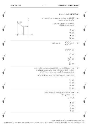 אין להעתיק או להפיץ בחינה זו או קטעים ממנה בכל צורה ובכל אמצעי ,או ללמדה -כולה או חלקים ממנה -בלא אישור בכתב מהמרכז הארצי לבחינות ולהערכה.