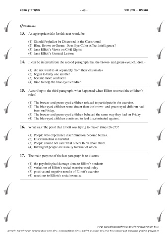 . בלא אישור בכתב מהמרכז הארצי לבחינות ולהערכה- כולה או חלקים ממנה- או ללמדה,אין להעתיק או להפיץ בחינה זו או קטעים ממנה בכל צורה ובכל אמצעי