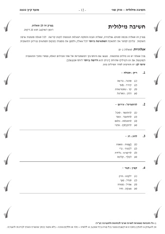 מועד קיץ 2022 - 12 - חשיבה מילולית -פרק שני