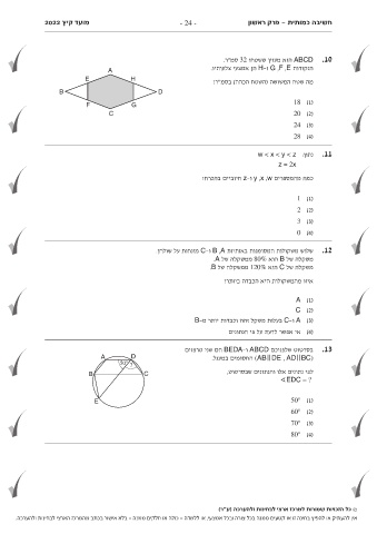 אין להעתיק או להפיץ בחינה זו או קטעים ממנה בכל צורה ובכל אמצעי ,או ללמדה -כולה או חלקים ממנה -בלא אישור בכתב מהמרכז הארצי לבחינות ולהערכה.