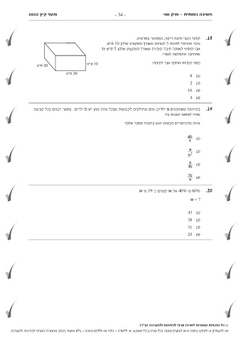 אין להעתיק או להפיץ בחינה זו או קטעים ממנה בכל צורה ובכל אמצעי ,או ללמדה -כולה או חלקים ממנה -בלא אישור בכתב מהמרכז הארצי לבחינות ולהערכה.