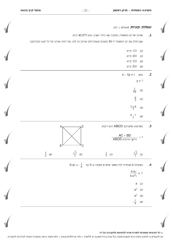 מועד קיץ 2023 - 21 - חשיבה כמותית -פרק ראשון