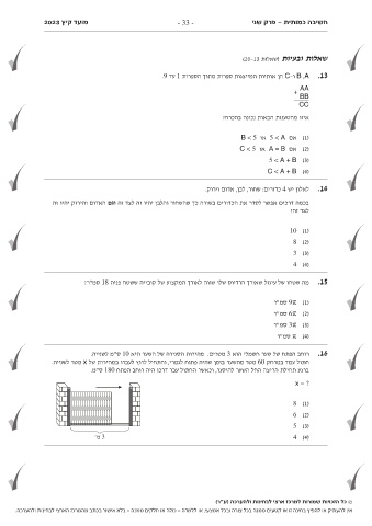 מועד קיץ 2023 - 33 - חשיבה כמותית -פרק שני