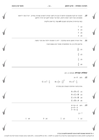 מועד קיץ 2024 - 24 - חשיבה כמותית -פרק ראשון