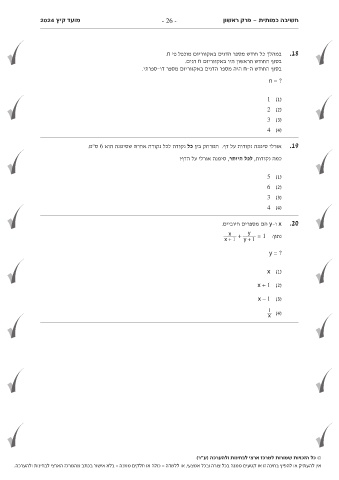 מועד קיץ 2024 - 26 - חשיבה כמותית -פרק ראשון