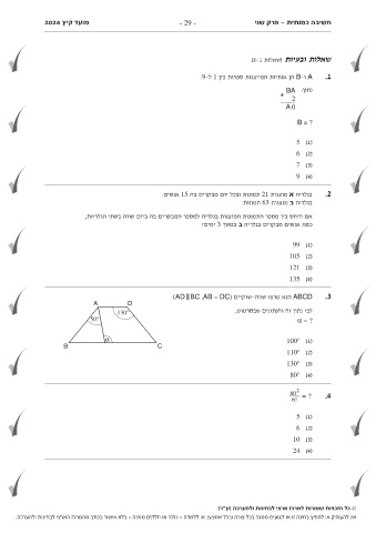 מועד קיץ 2024 - 29 - חשיבה כמותית -פרק שני