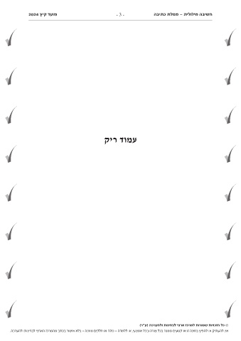 אין להעתיק או להפיץ בחינה זו או קטעים ממנה בכל צורה ובכל אמצעי ,או ללמדה -כולה או חלקים ממנה -בלא אישור בכתב מהמרכז הארצי לבחינות ולהערכה.