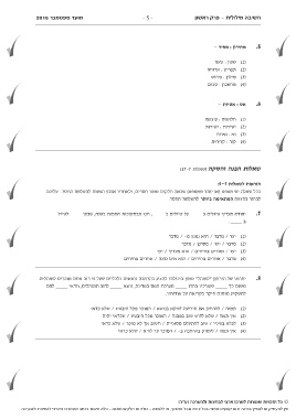 בכל שאלה יש משפט (או יותר ממשפט) שכמה חלקים ממנו חסרים ,ולאחריו ארבע הצעות להשלמת החסר .עליכם