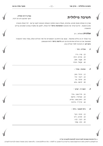 מועד סתיו 2018 - 12 - חשיבה מילולית -פרק שני