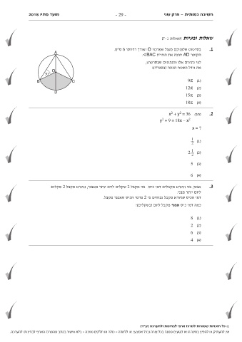 אין להעתיק או להפיץ בחינה זו או קטעים ממנה בכל צורה ובכל אמצעי ,או ללמדה -כולה או חלקים ממנה -בלא אישור בכתב מהמרכז הארצי לבחינות ולהערכה.