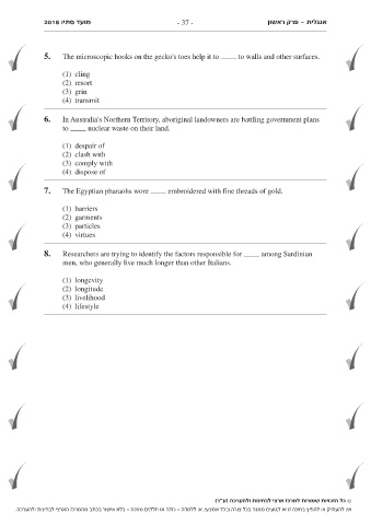 2018 מועד סתיו - 37 - פרק ראשון- אנגלית