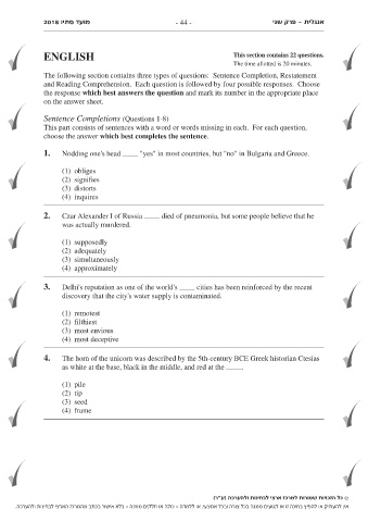 2018 מועד סתיו - 44 - פרק שני- אנגלית