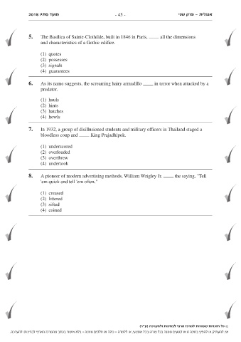 2018 מועד סתיו - 45 - פרק שני- אנגלית