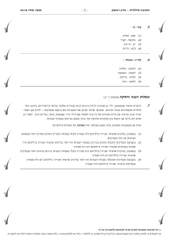 מועד סתיו 2018 חשיבה מילולית -פרק ראשון - 5 -