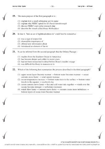 2018 מועד סתיו - 50 - פרק שני- אנגלית