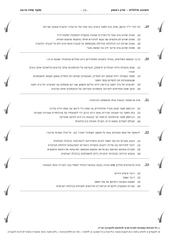 מועד סתיו 2019 - 10 - חשיבה מילולית -פרק ראשון