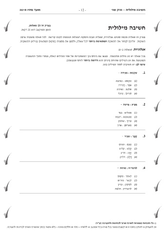 מועד סתיו 2019 - 12 - חשיבה מילולית -פרק שני