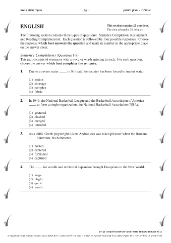 2019 מועד סתיו - 36 - פרק ראשון- אנגלית