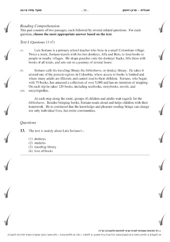 2019 מועד סתיו - 39 - פרק ראשון- אנגלית