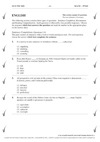 2019 מועד סתיו - 44 - פרק שני- אנגלית