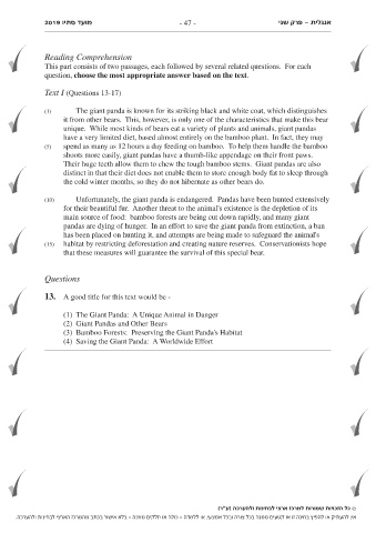 2019 מועד סתיו - 47 - פרק שני- אנגלית