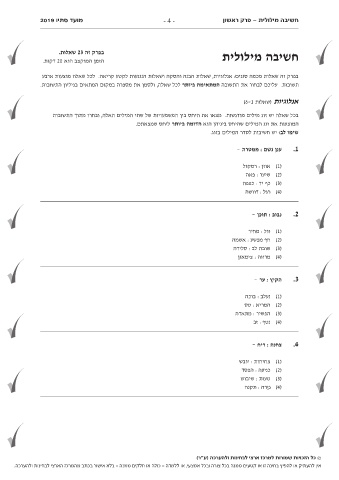 מועד סתיו 2019 חשיבה מילולית -פרק ראשון - 4 -