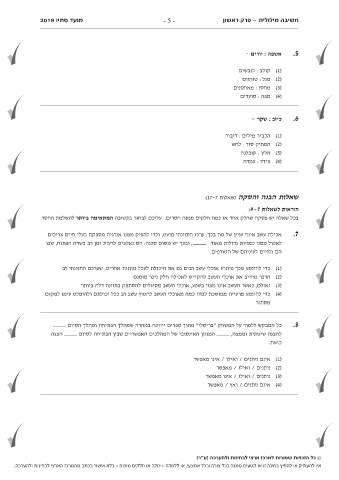 מועד סתיו 2019 חשיבה מילולית -פרק ראשון - 5 -