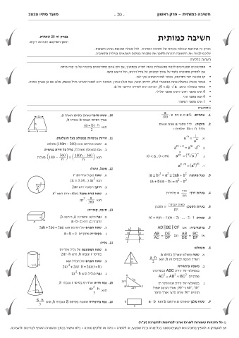 A hypoténuse CAA DF הוא ,h A בסיסوﺗהﺮS ששטח פירמידה נפח . 16 b bb aa .9שטח מלבן שאורכו aורוחבו bהוא a · b