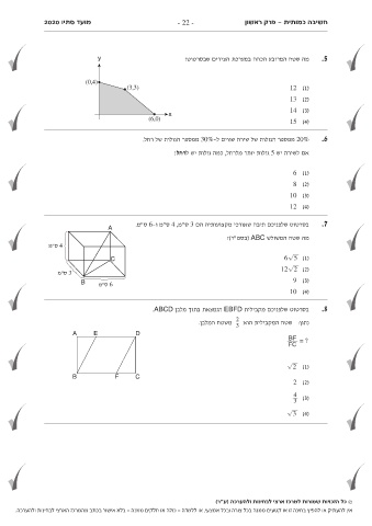 אין להעתיק או להפיץ בחינה זו או קטעים ממנה בכל צורה ובכל אמצעי ,או ללמדה -כולה או חלקים ממנה -בלא אישור בכתב מהמרכז הארצי לבחינות ולהערכה.