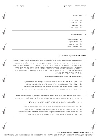 מועד סתיו 2020 חשיבה מילולית -פרק ראשון - 5 -