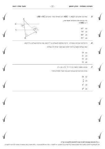 אין להעתיק או להפיץ בחינה זו או קטעים ממנה בכל צורה ובכל אמצעי ,או ללמדה -כולה או חלקים ממנה -בלא אישור בכתב מהמרכז הארצי לבחינות ולהערכה.