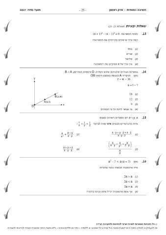 מועד סתיו 2021 - 25 - חשיבה כמותית -פרק ראשון