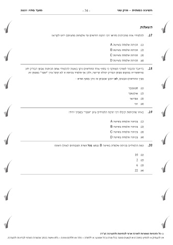 מועד סתיו 2021 - 34 - חשיבה כמותית -פרק שני