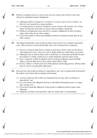 2021 מועד סתיו - 38 - פרק ראשון- אנגלית